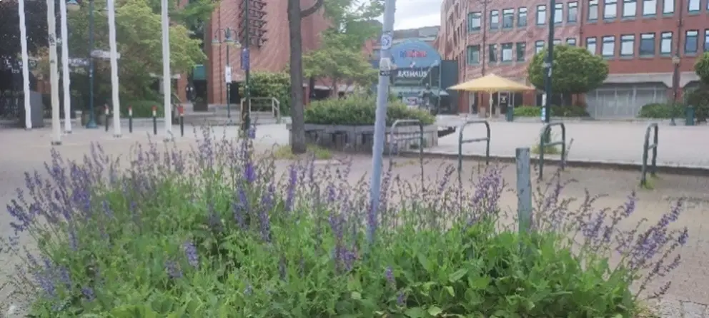 Der erste Eindruck zählt! Beim Besuch des Rathauses sind die Baumbeete nicht zu übersehen, die durch heimische Wiesenblumen begrünt wurden. Diese Beete dienen nicht nur als Vorbild im Bereich der Baumwurzeln, sondern bieten auch einen Lebensraum und eine Nahrungsquelle für Insekten. Nebenbei sorgt die Durchwurzelung der Baumscheiben dafür, dass Regenwasser schneller versickern kann und so dem Baum zugutekommt. Im Heidbergpark dürfen sich die Besucherinnen und Besucher gleich über größere Blumenwiesen freuen.