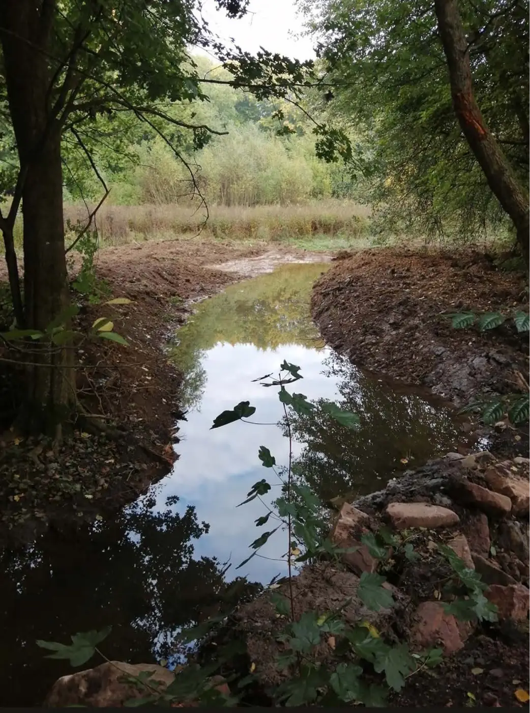 Deshalb entwickelte die Stadt gemeinsam mit einer privaten Klinik als Flächeneigentümerin ein naturnahes und dauerhaft tragfähiges Konzept. Mit Unterstützung von Ersatzgelder nach § 15 Abs. 6 BNatSchG wurde die „Wilde“ im betroffenen Abschnitt in eine angrenzende Feucht- und Nasswiese umgelegt. Dort entstand ein neu angelegtes, flach ausgebildetes Bachgerinne mit auentypischen Strukturen, Inseln und Retentionsflächen.