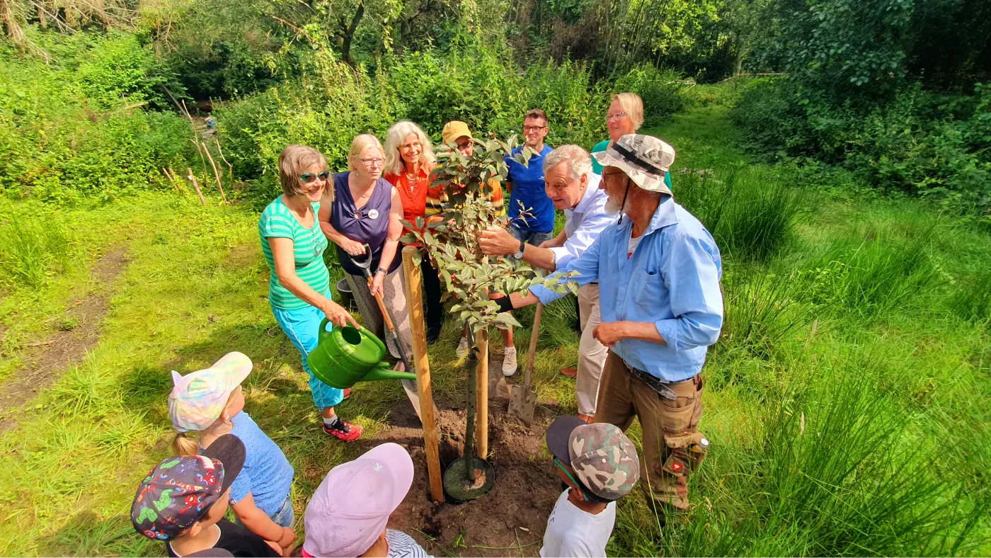 Ende 2023 fand sich der Verein Hanse-Obst e.V. als Träger sowie eine agile Kooperation, bestehend aus drei naturaffinen Vereinen und Pfadfindern unter Leitung des Bereichs Umwelt-, Natur- und Verbraucherschutz. Eine hochmotivierte Aktivengruppe für praktische Arbeiten formierte sich. Die Projektleitung koordinierte das Einwerben von rund 100.000 € Fördergeldern, die finanzielle Abwicklung, Planungsaufträge für Gehölzarbeiten und Wegebau und die Öffentlichkeitsarbeit.