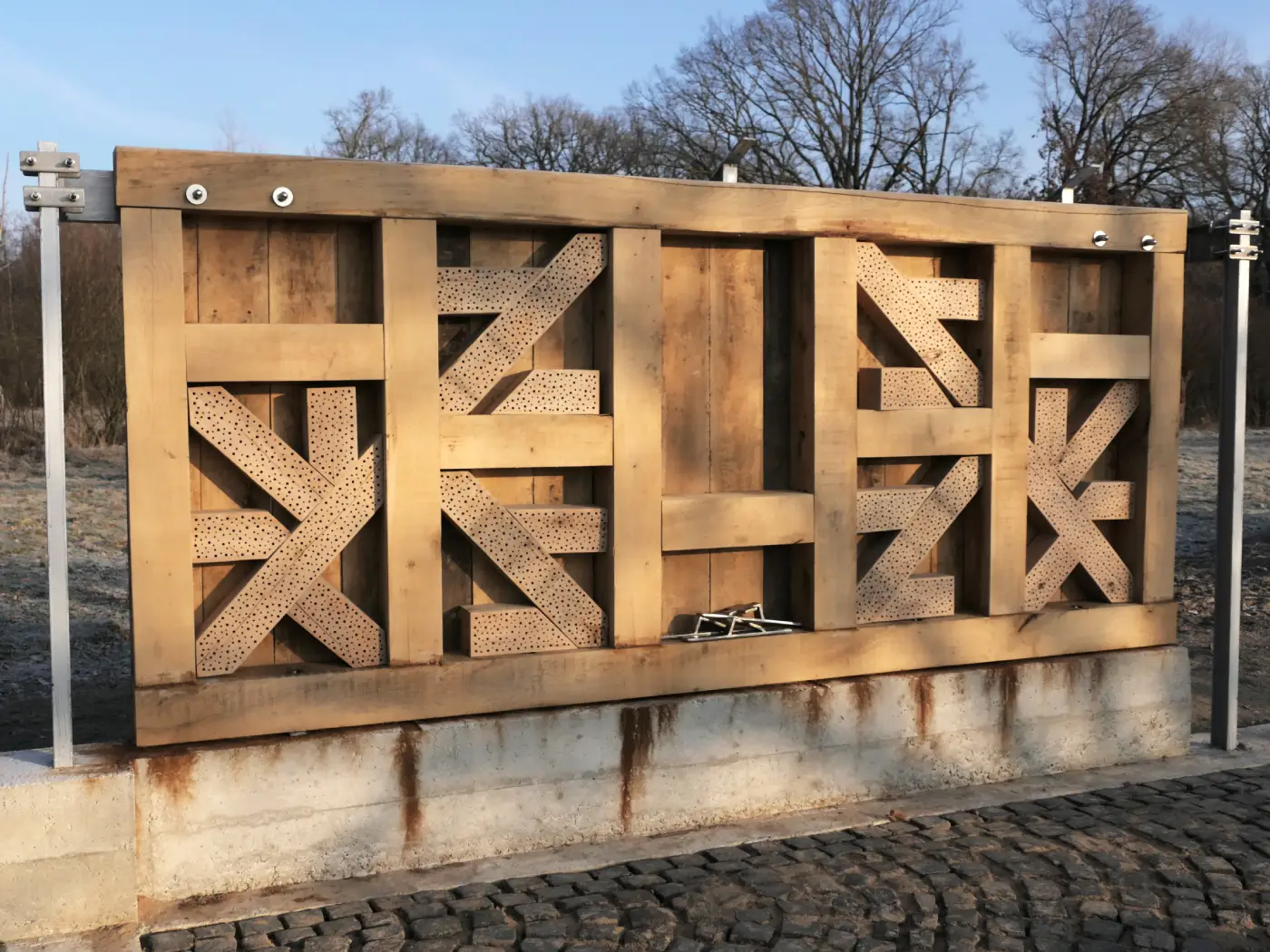 Die Station wurde durch zwei große Wildbienennisthilfen und zwei Infotafeln zur Lebensweise der Wildbienen und die richtige Gestaltung von Nistmöglichkeiten ergänzt.